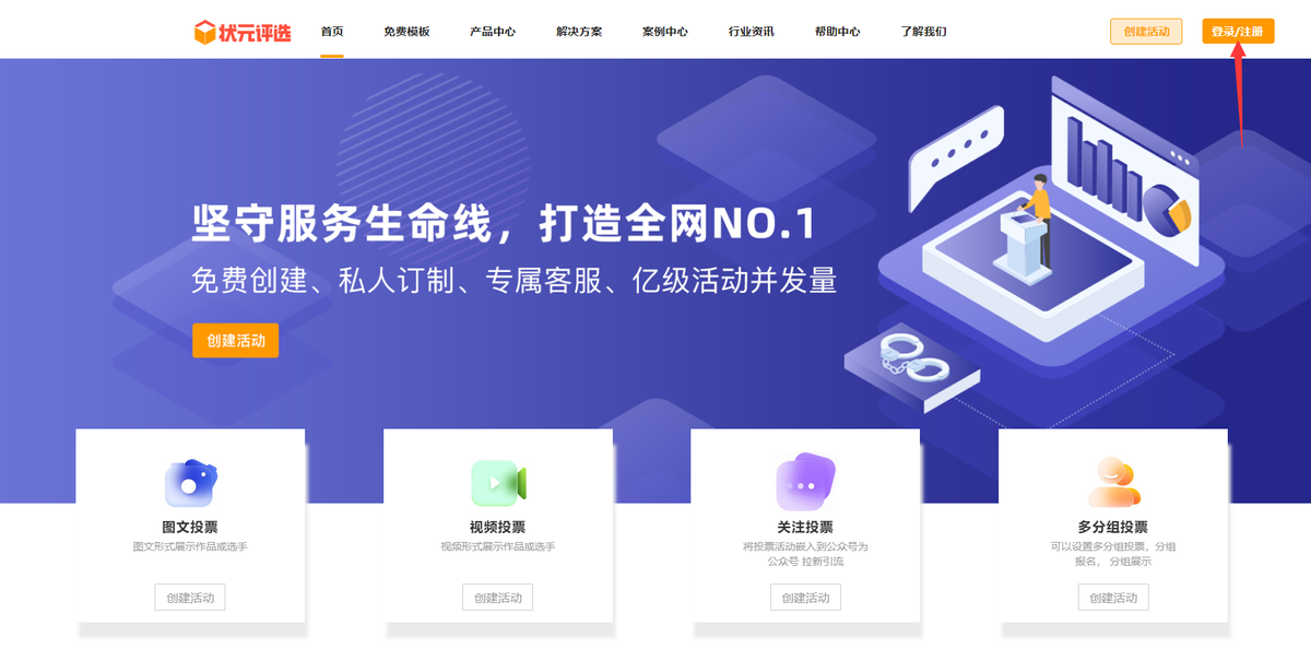 第一步,随便打开哪个浏览器,在地址栏处,输入第三方投票制作平台状元评选_免费的微信在线快速投票制作管理系统的网址www.zypx123.cn,进入到平台的首页上,按照提示,完成账号的注册登录。