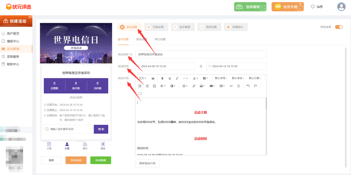 那要如何创建一场与世界电信日有关的微信投票活动?