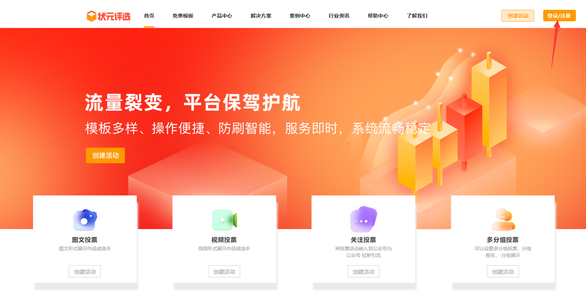 第一步,在任意一个浏览器里面,输入状元评选_免费的微信在线快速投票制作管理系统的网址,即www.zypx123.cn,进入到投票制作平台的首页上,按照提示输入手机号、验证码等信息,完成账号的注册登录后,系统会自动跳转至活动后台,在【模板中心】里面,可以选择一款合适的模板样式。