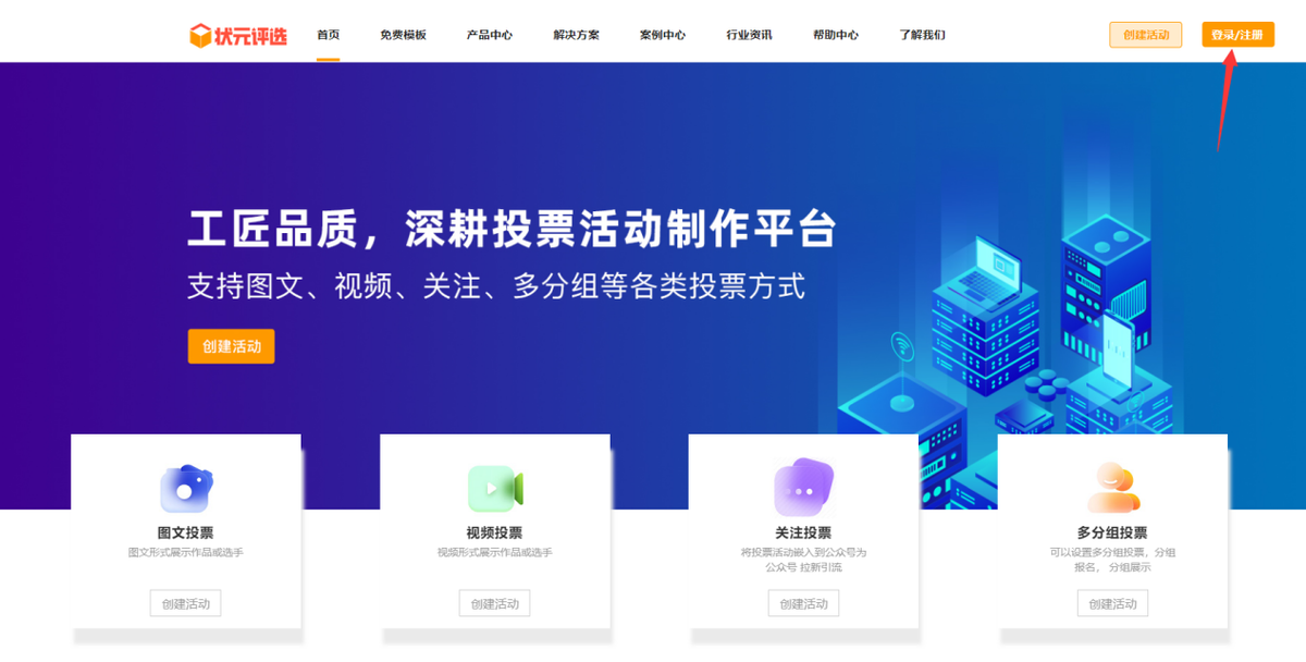 首先,在任意一个浏览器里面输入第三方投票制作平台状元评选_免费的微信在线快速投票制作管理系统的网址www.zypx123.cn,进入到平台的首页,完成注册之后,系统会自动跳转至活动后台,在【模板中心】里面选择一款合适的模板样式。