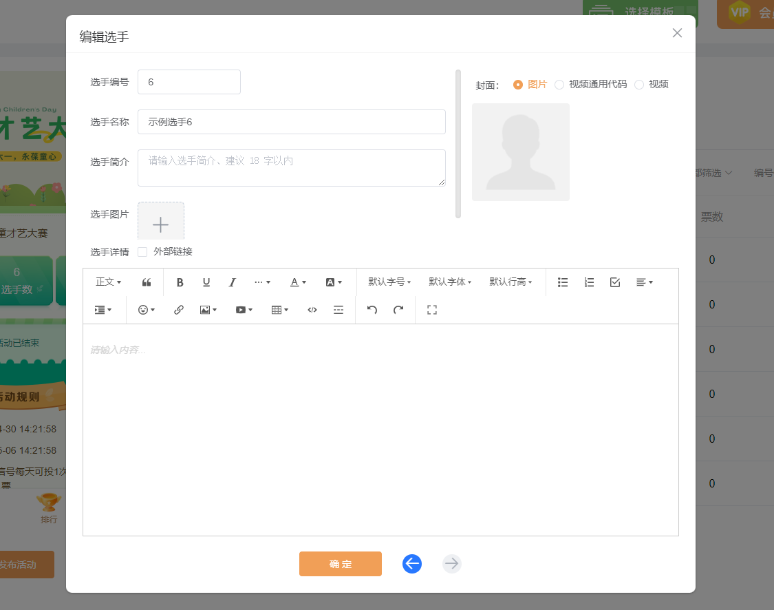 然后,在【选手管理】中,添加所有选手的个人资料,包括他们的名称、简介等。