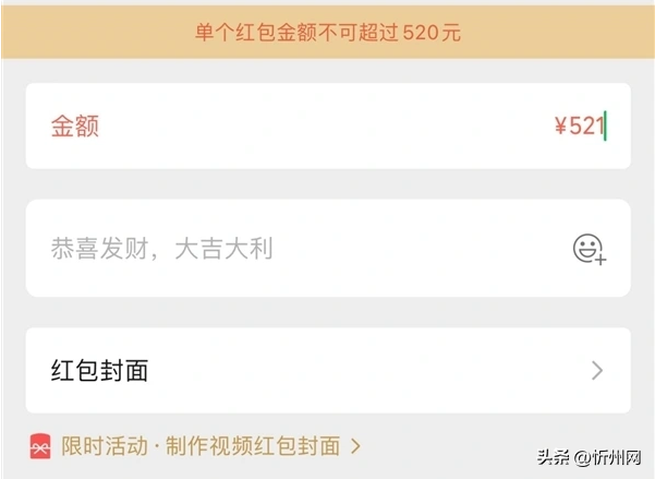 今日5月20号,微信提升了单个红包的额度上限。打开红包页面,输入金额就会发现额度由原来的200元调升至520元。