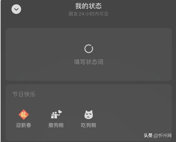 此外,微信个人中心页面的状态里,还上线了两个节日限定状态,分别是“撒狗粮”和“吃狗粮”。平时有切换状态习惯的你也可以随意切换限定状态。
