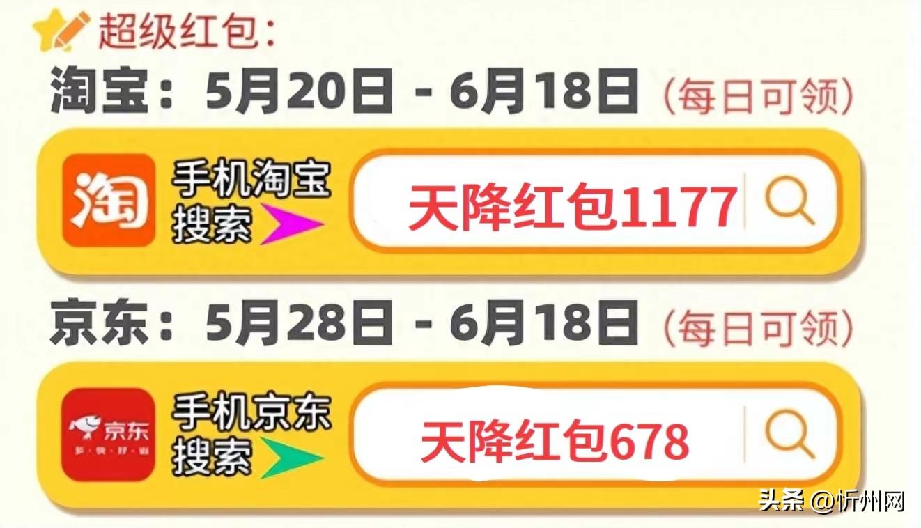首先,划重点!今年的淘宝618红包口令是「天降红包1177」,京东的618红包口令是「天降红包678」记得每天去领,因为领的红包大小和你搜索的什么口令有关哦!