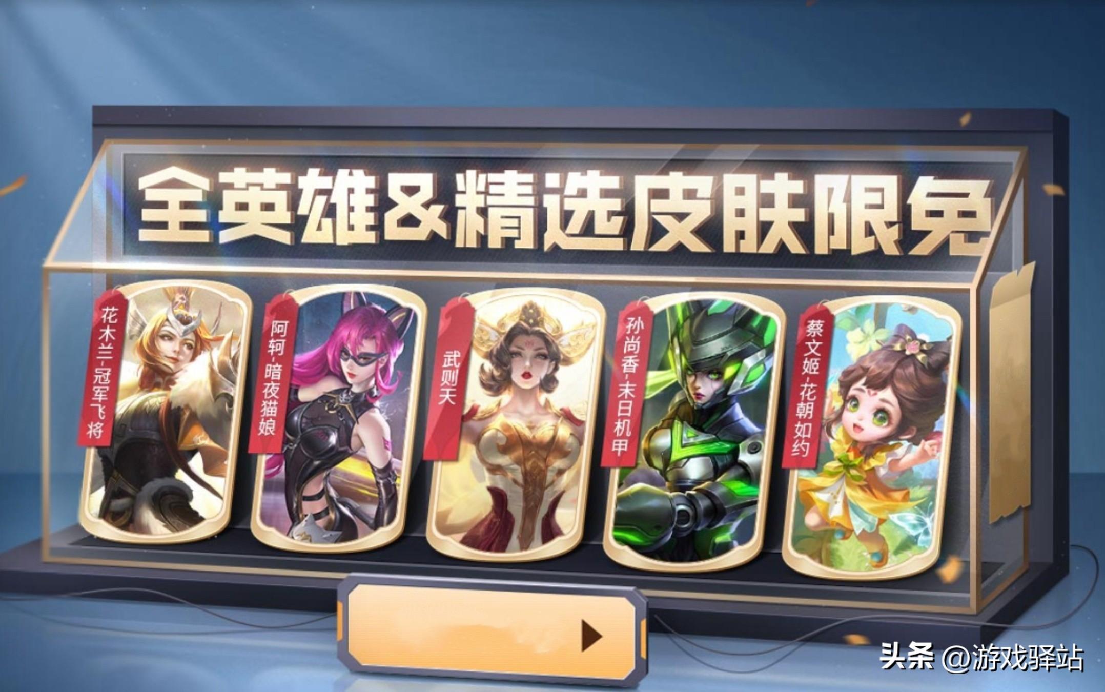 二、全英雄和精选皮肤限免,夏日盛典的全英雄限免没有限制条件,包含了“水晶英雄”武则天,并加入蔡文姬花朝如约、孙尚香末日机甲等1688传说,以及2888史诗电玩小子等皮肤供玩家免费体验。