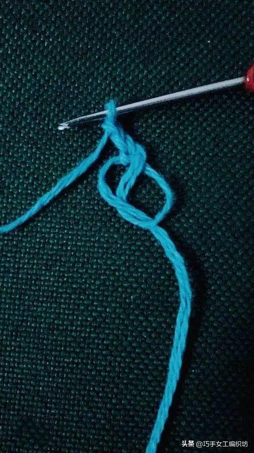 1.用钩针钩一个活头结线圈,拉花3针,钩中长针2针,紧锁成1针,拉花3针。