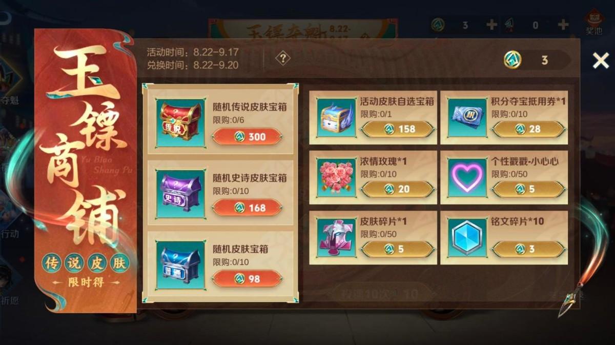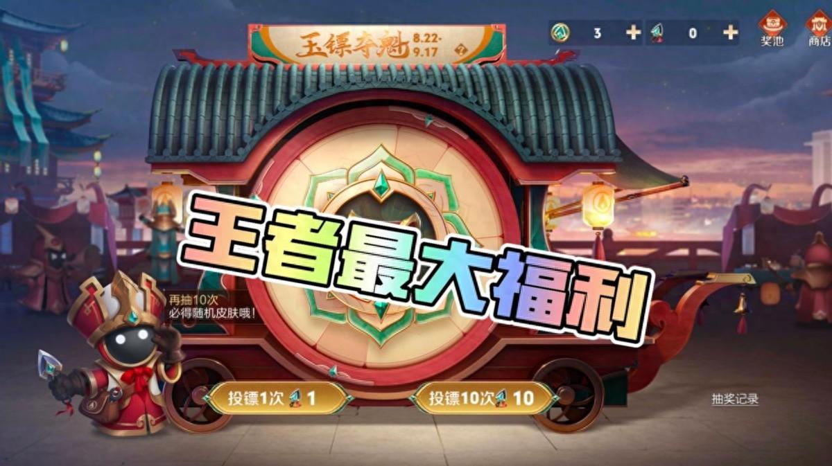 要搞清楚这个问题,首先就要明白玉镖夺魁的活动规则。简单点来说,就是玩家通过花费点券获得抽奖机会,累计10次必抽中一款皮肤,但优先会抽出目前未拥有的皮肤。