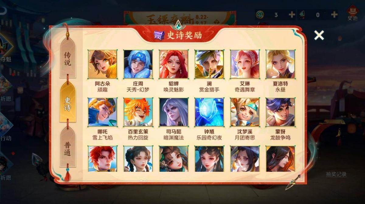 而目前的设定是,60点券抽取1次,600点券可抽取10次,皮肤包括普通皮肤、勇者皮肤、史诗皮肤以及传说皮肤。这也就意味着你较低品质皮肤拥有的越多,那么参加这个活动就越划算,这也是玩家逐渐喜欢上这个活动的最重要原因。