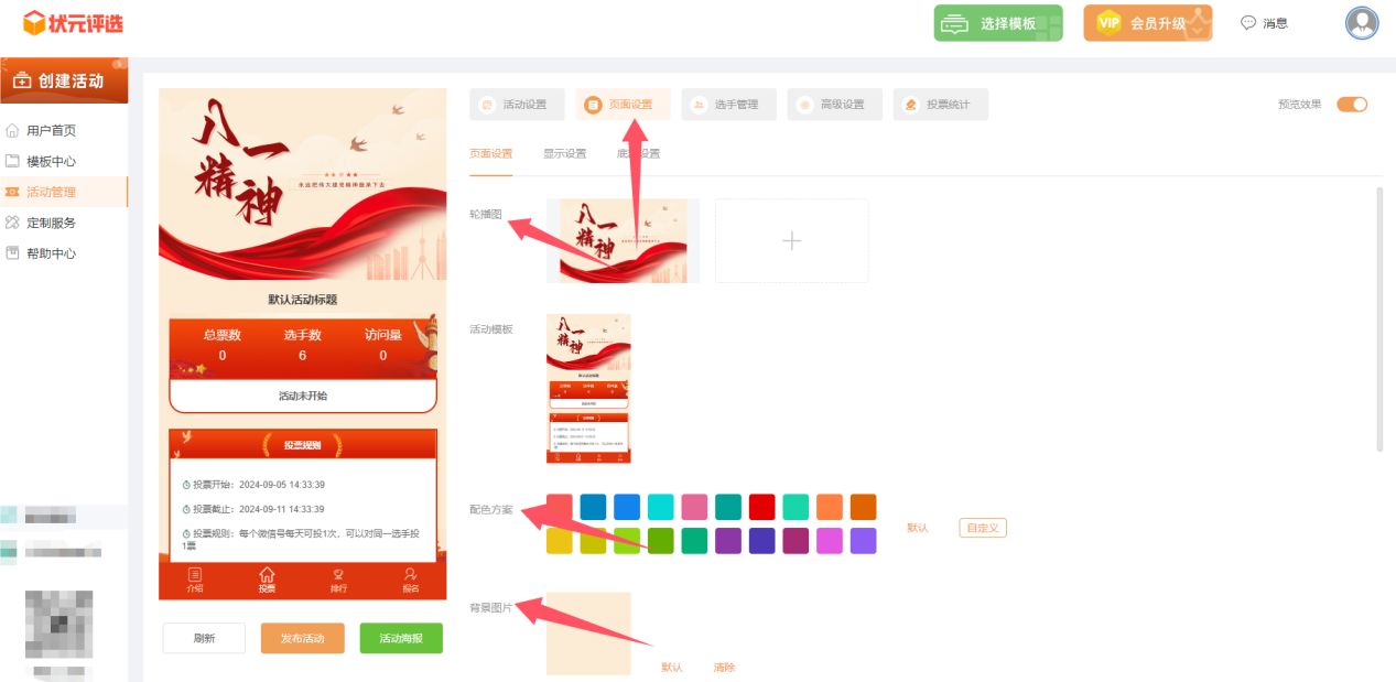 再者,在【页面设置】里面,上传一张轮播图封面,并根据活动需要,完成其他页面设置上的操作,如添加背景音乐、漂浮物等。