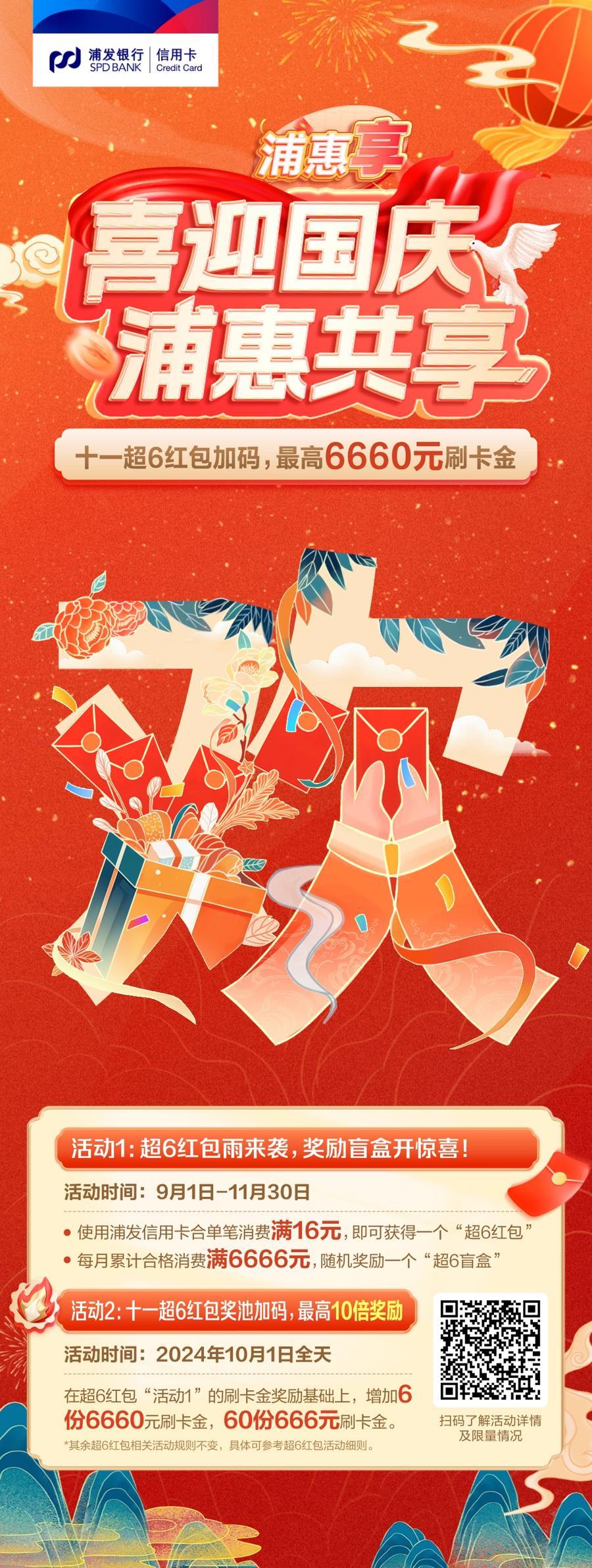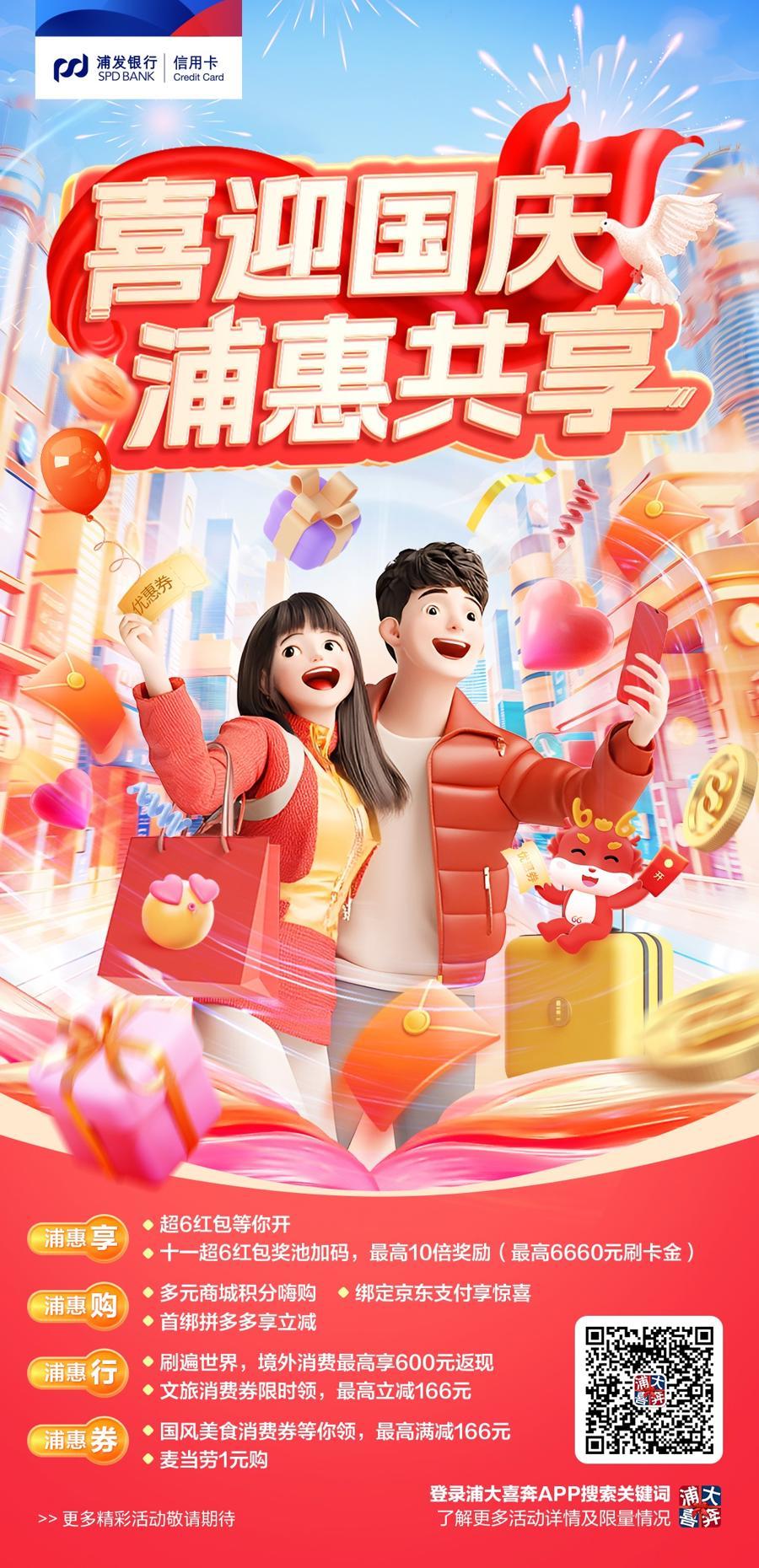“喜迎国庆 浦惠共享”活动聚焦国庆消费热潮,综合考量普惠可获性、普惠便利度、普惠覆盖面,将惠民做实,为节庆增彩。