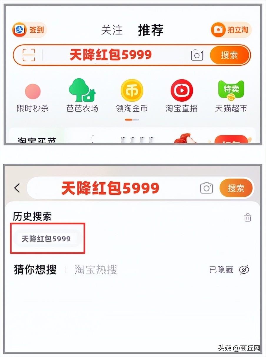 打开手机淘宝APP搜索「 天降红包5999 」即可