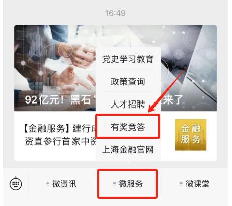 关注“上海金融官微”微信公众号,点击进入“微服务—有奖竞答” 即可参与答题。