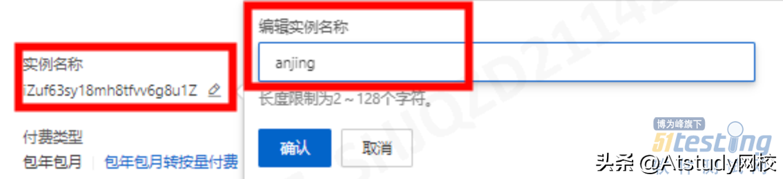 继续在服务器基本信息页面中,点击实例名称后的重命名进行修改服务器名称内容,修改完成后点击确认按钮。