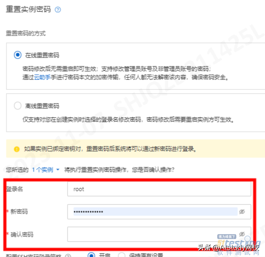 点击服务器列表名称进入服务器基本信息页面中,点击重置密码,进入到服务器重置密码页面中,在新密码中输入对应的密码,登录名输入root。