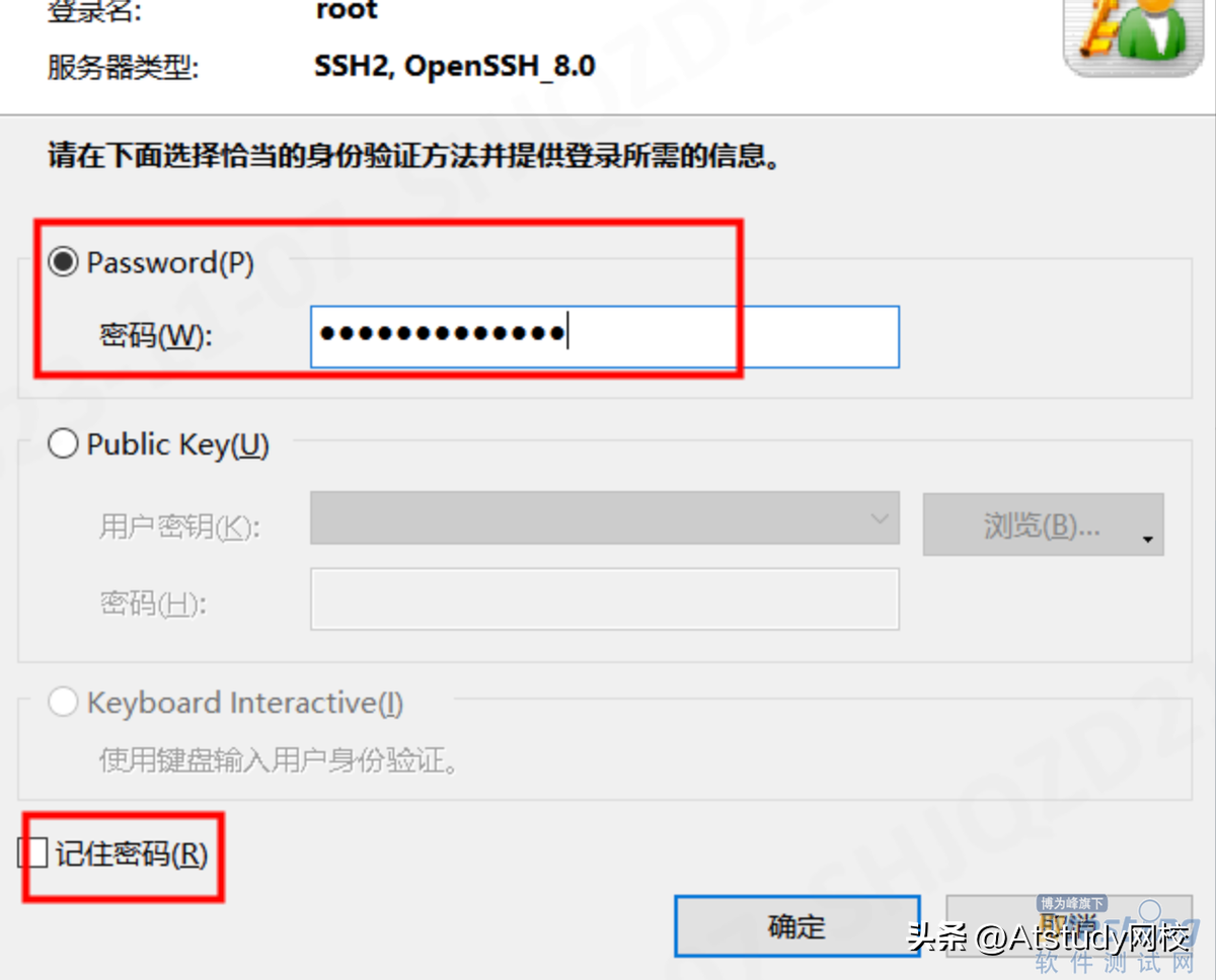 配置完成账号后,系统会提示配置密码,将上述内容中重置的密码进行填写,这里可以进行记住密码和不记住密码,记住密码后,下次点击会话就可以直接进行登录,无需在输入密码。