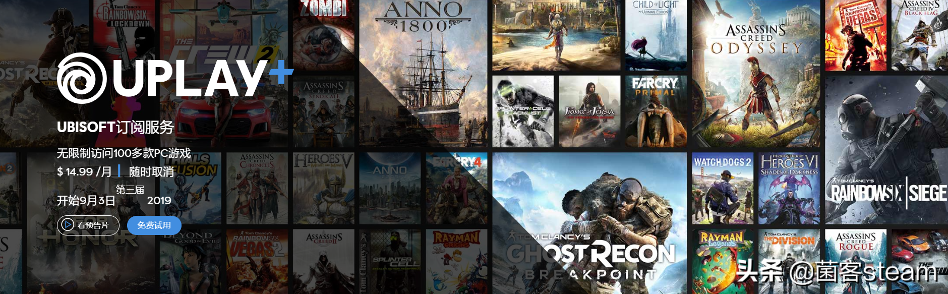 从2019年9月3日至30日,每个Ubisoft帐户免费试用一次。要开始免费试用,您必须提供有效的信用卡或借记卡。在2019年10月1日免费试用期满后,您将被收取全额订阅价格(每月14.99美元),除非您在9月30日之前取消!