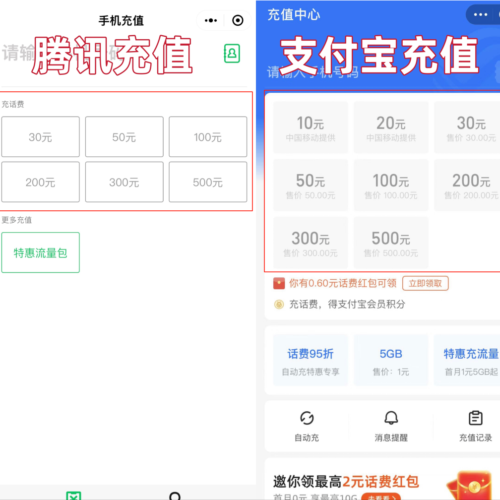 除了全网话费充值,平台还有全网会员充值(如:爱奇艺、腾讯、QQ音乐、喜马拉雅、哈啰出行等日常所需的各种会员),以及本地吃喝玩乐套餐等等生活刚需的、高频的消费商品或服务,都享受全网低价。