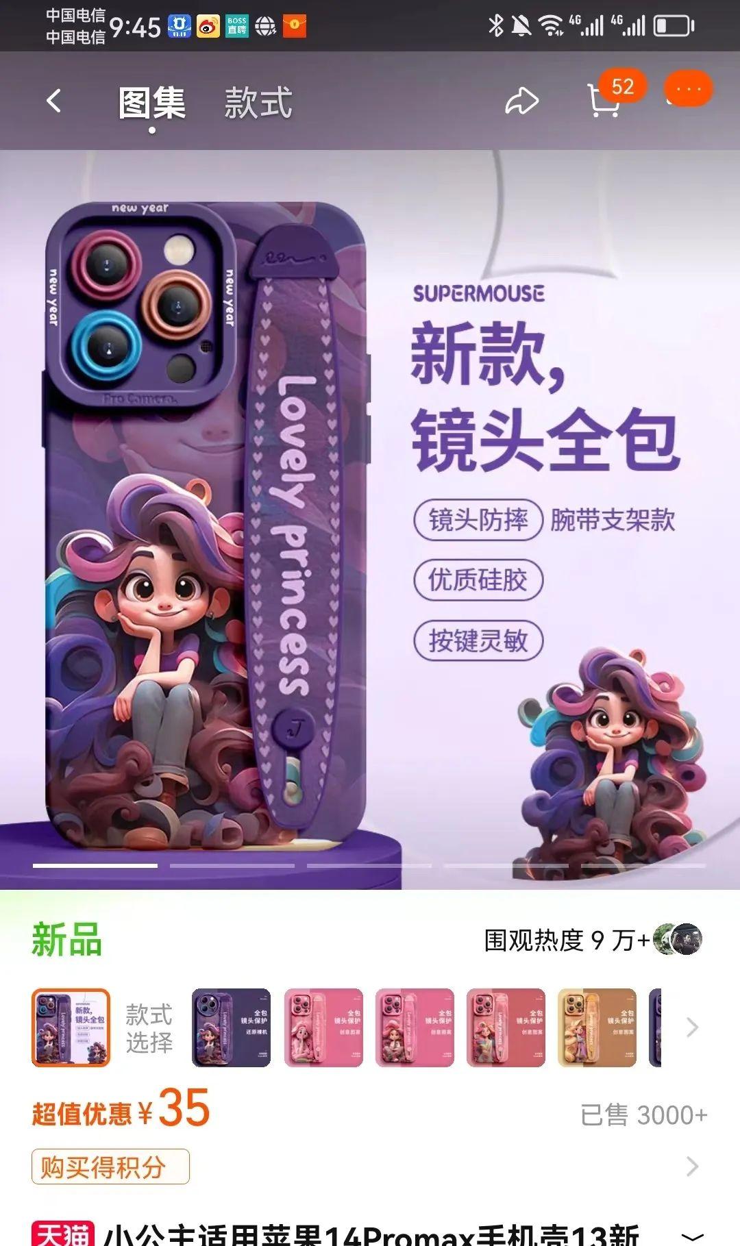 我们选取其中的一款产品作为参考,就选择这家店铺的小公主手机壳。