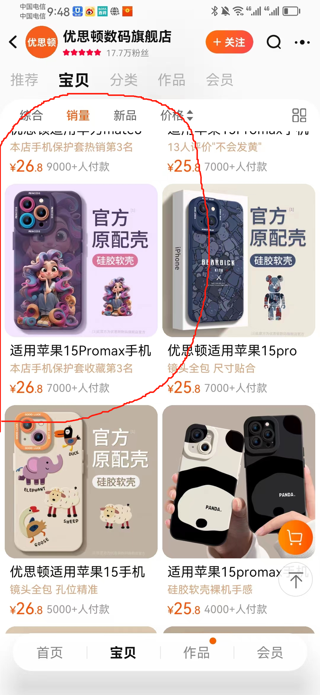 那大家也可以看到B店的货品中,卖的最好的则是手机壳中的基本款,或者创意款。