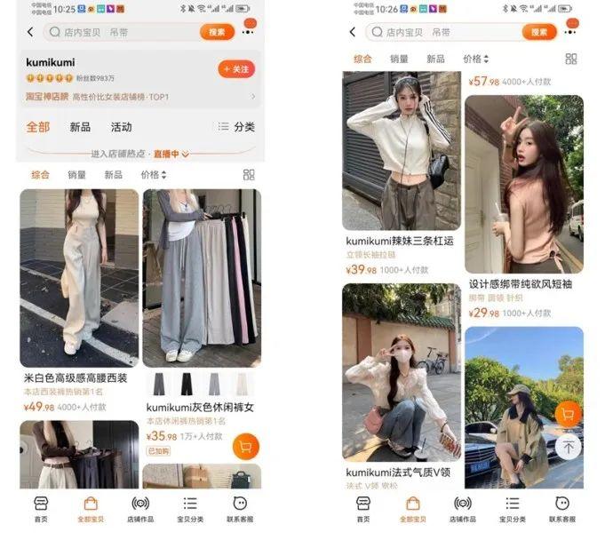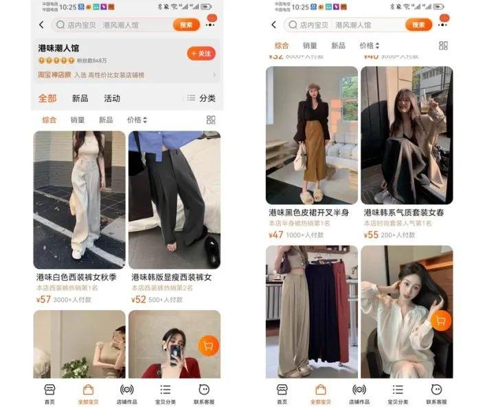 比如在这家【港味风格店铺】,该款与其他裤装,上衣,打造出了港味风格的产品组合(但这个港味风格属实有些廉价)