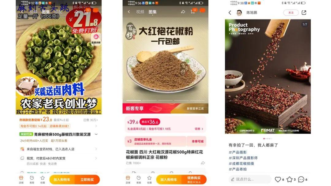 就好比同样是卖花椒,花椒这个东西,没啥独特性,但不一样的视觉呈现,会让产品呈现出不同的调性。