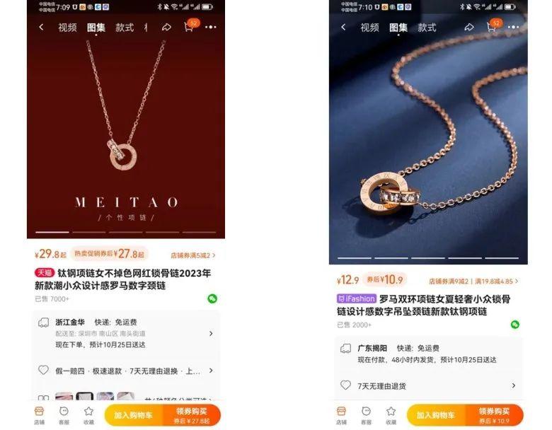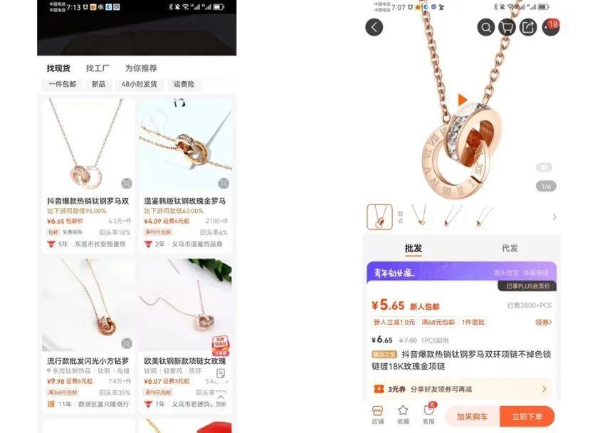 左为产品在1688源头供应商之一,右为该产品在淘宝零售的商家