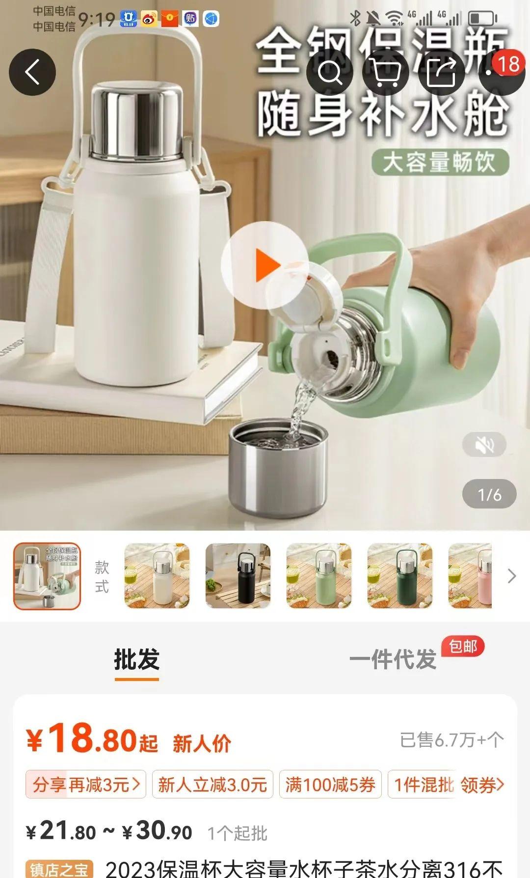 比如这款来自1688的保温杯售价为18.8元 ,可以看到是个热销款,销量6万多个。