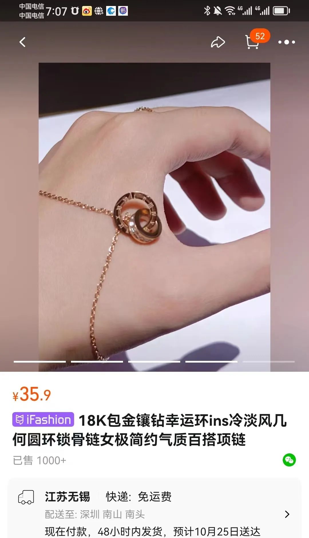 我们打开1688,下面为某款近期热销的罗马双环项链,成本在6元~9元左右。