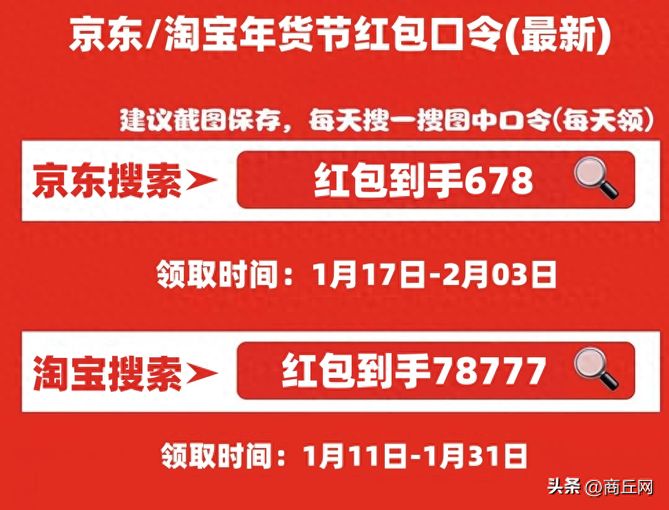 2024年淘宝年货节活动什么时候开始?淘宝年货节开始时间为1月17号开始到1月31号结束,打开手机淘宝APP搜索【红包到手78777】最高可领8888元超级红包!京东年货节开始时间为1月17号开始到2月3号结束,打开手机京东APP搜索【红包到手678】每日可领3次最高可领9999元京享红包!