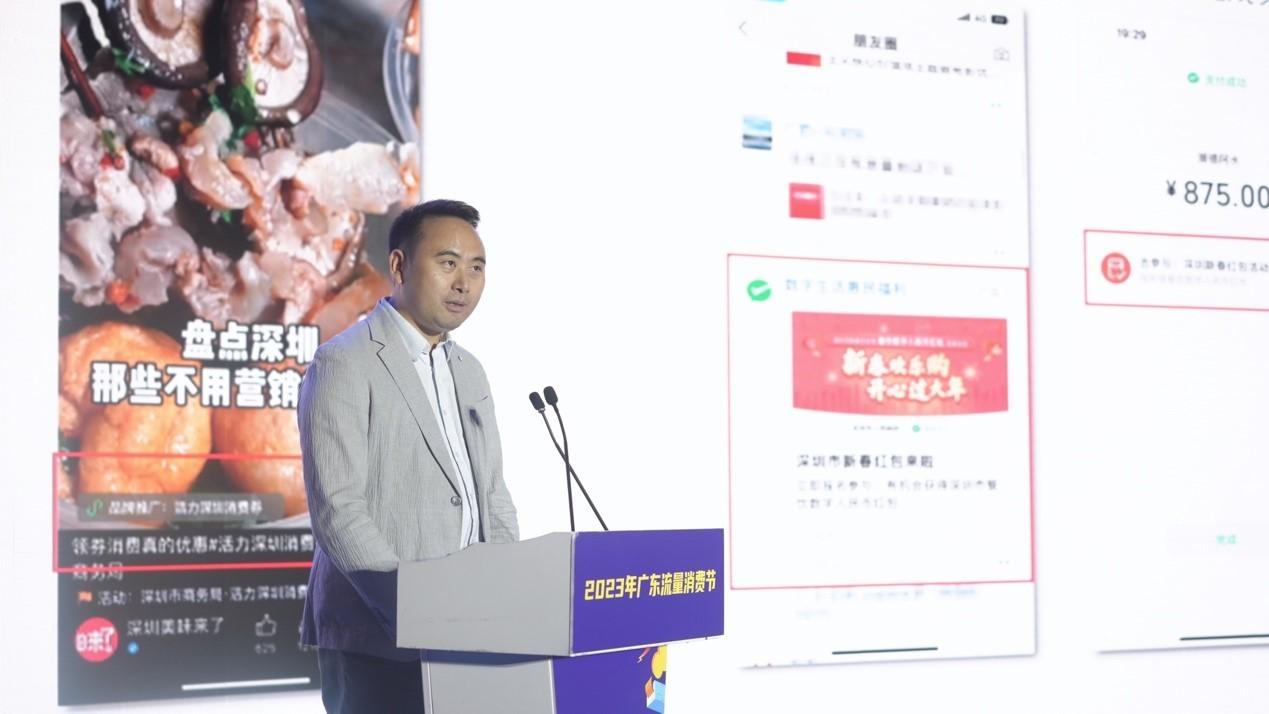 腾讯微信支付公共服务中心总经理辛建华发布腾讯助力扩内需、促消费的新举措。