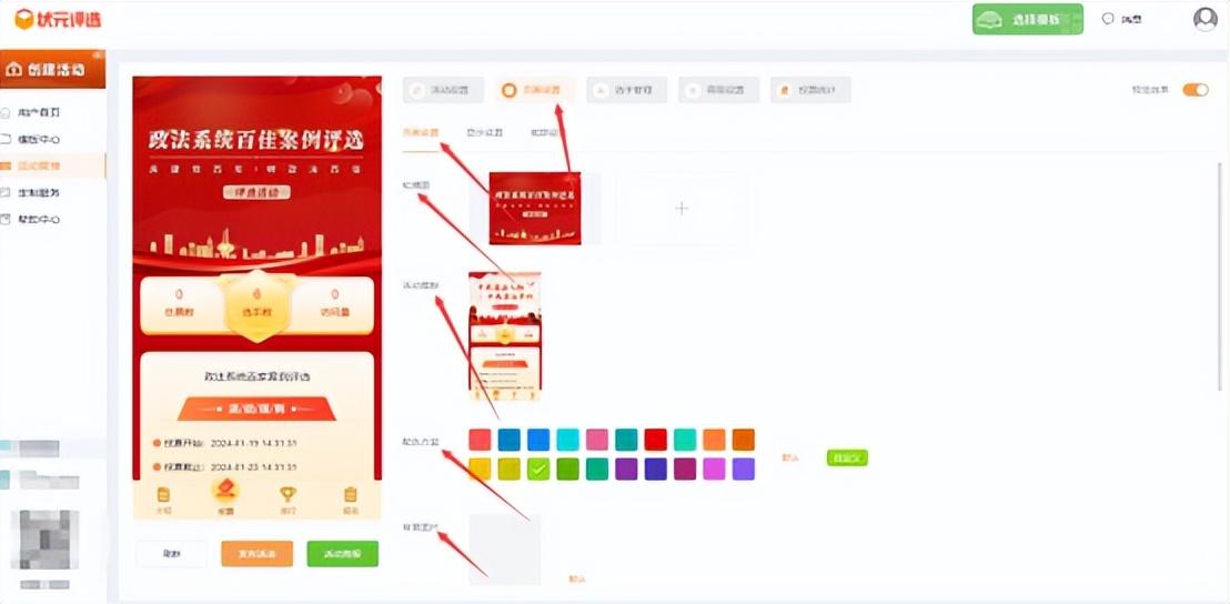 其次,在状元评选的首页,进行【注册登录】后,跳转至活动后台管理中心,在【模板中心】里面,选择一个合适的模板样式。