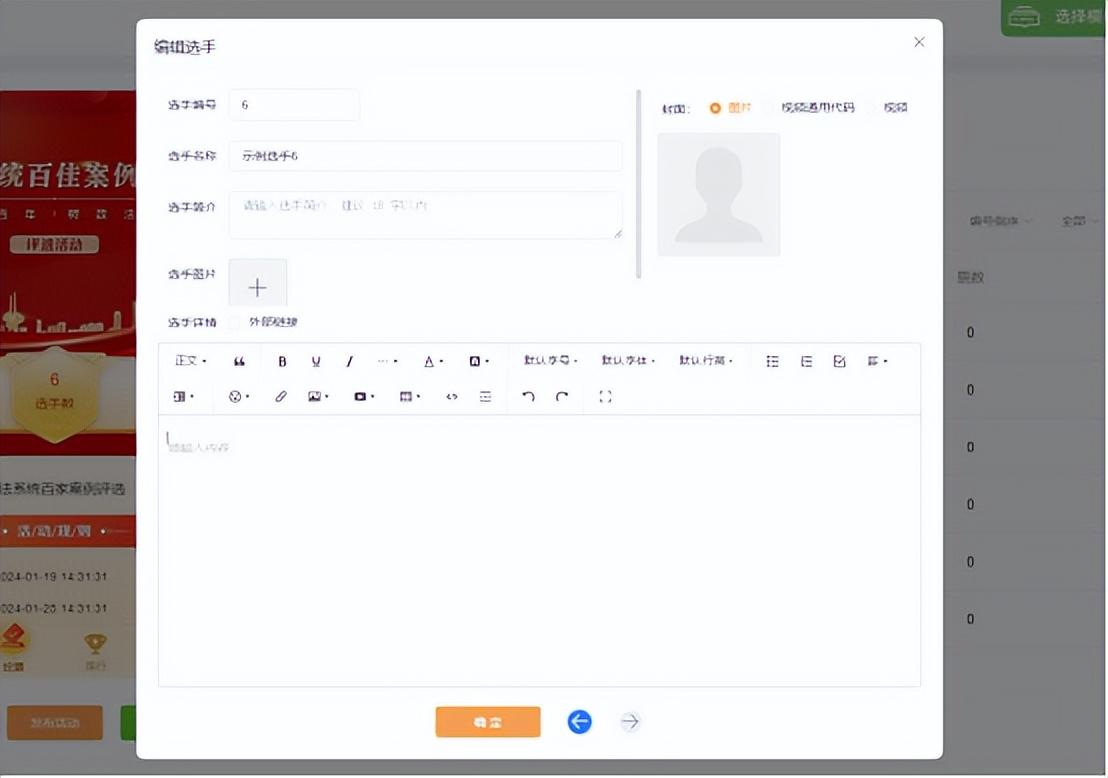 然后,在【选手管理】里面,上传所有选手的个人资料,包括选手的名称、简介等。
