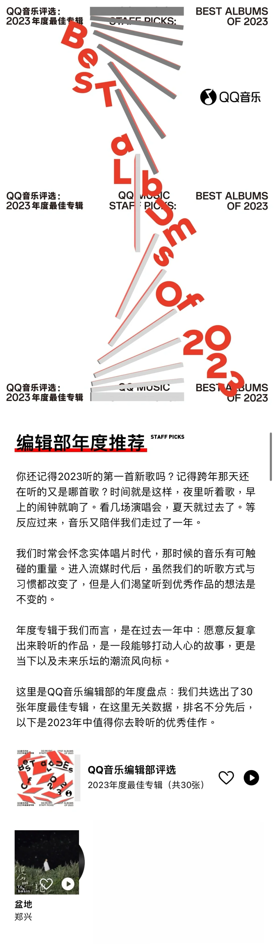 27. QQ音乐评选:2023年度最佳专辑