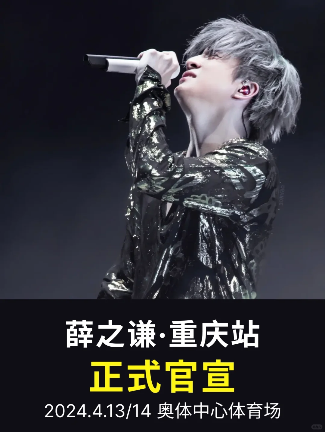薛之谦“天外来物”重庆演唱会官宣定档4月13日-14日,连开两场,演出地点为重庆奥体中心体育馆。