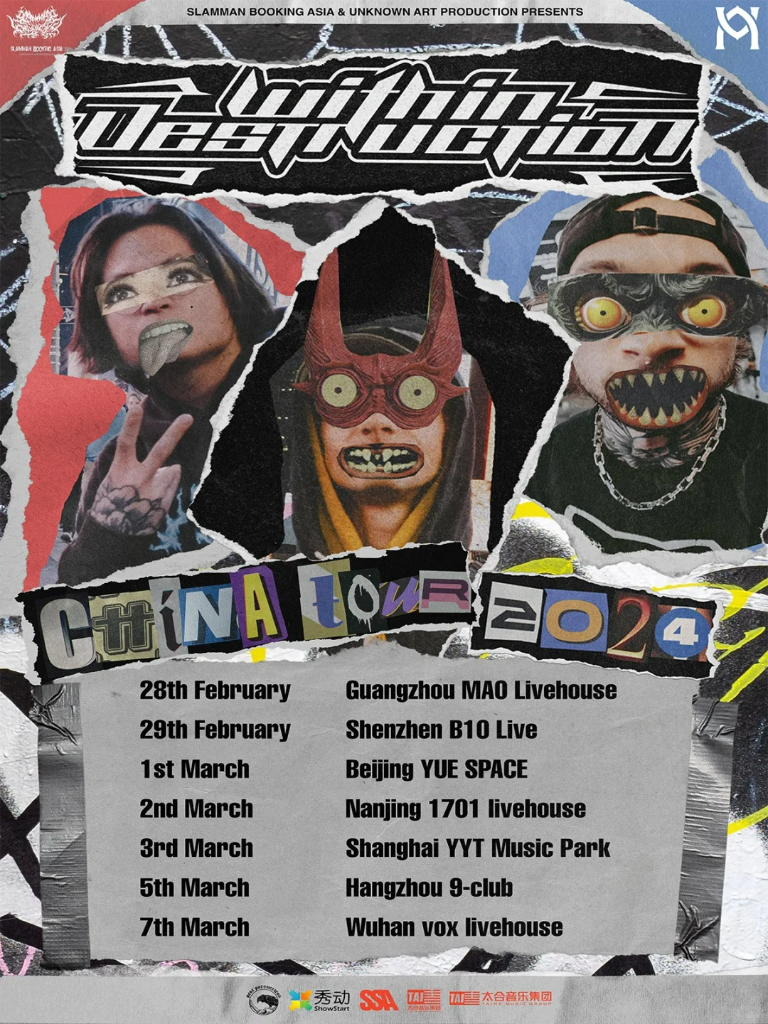 Within Destruction 2024 再度归来巡演,演出时间从2月28日持续到3月7日,演出城市有广州、深圳、北京、南京、上海、杭州、武汉,售票平台为秀动,1月29号12:00开票。