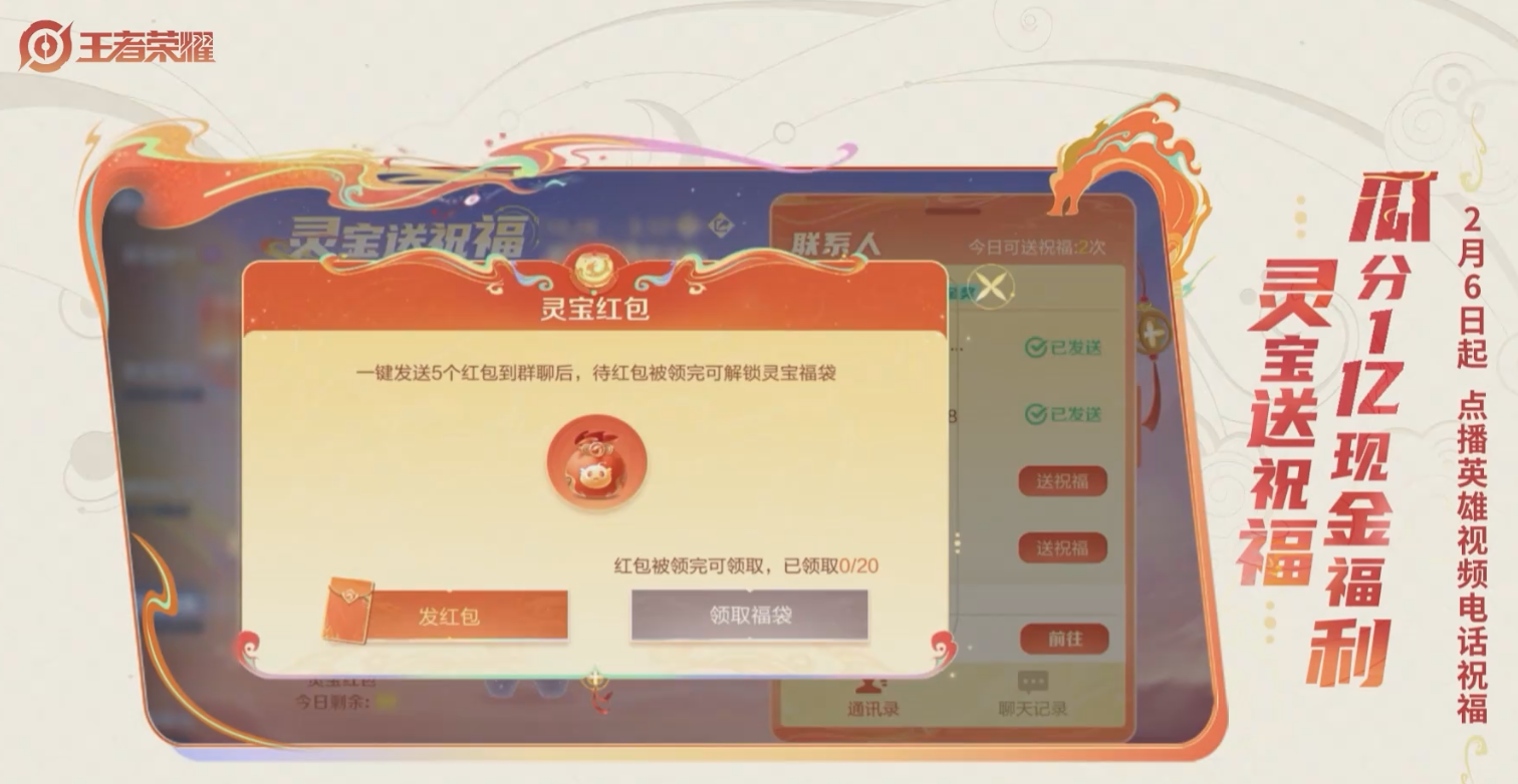 相信玩家们都知道,王者荣耀作为手游一哥,不仅是在手游市场上没有对手,就连流水收入,都是碾压所有手游的。而在近期的龙年新春活动中,王者荣耀又放出了一堆福利活动,同时还包含了氪金皮肤等等。那么,面对即将来袭的DNF手游,王者荣耀祭出终极福利。没错,就是灵宝送祝福,王者荣耀这次是跟玩家瓜分1亿马内,只要史诗登录王者荣耀,参与灵宝送祝福,就可以获取红包哦。这还不止,王者荣耀还放出了限时点券以及新春60卡。