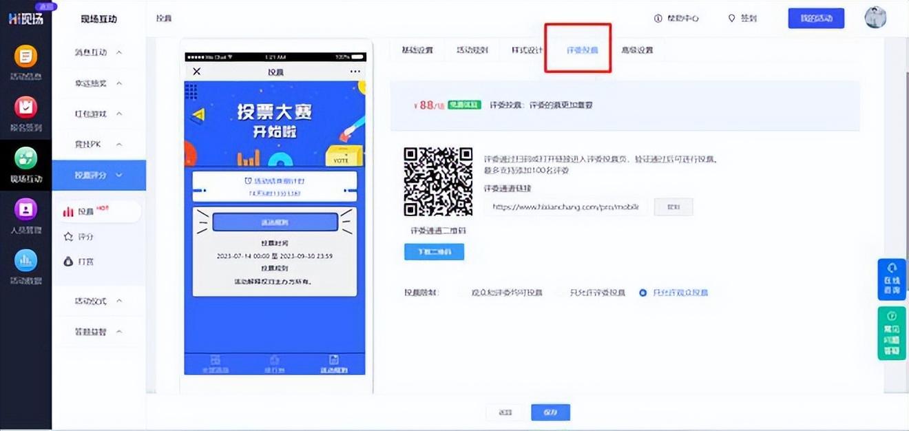 1)评委投票设置:投票限制、票数规则等