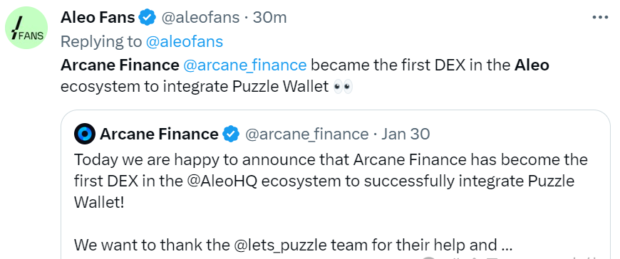 @arcane_finance 今天,我们很高兴地宣布 Arcane Finance 已成为全球首个 DEX @AleoHQ