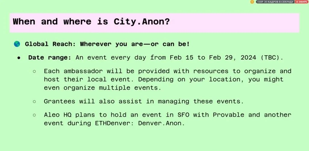 Aleo总部计划在SFO举办一次活动,并在ETH丹佛期间举办另一项活动:Denver.Anon。