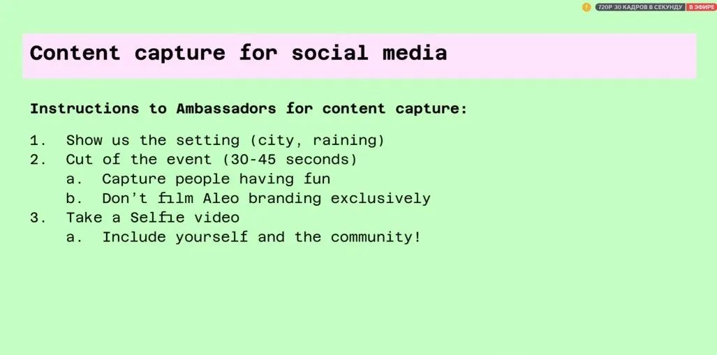 从社交媒体账户分享,标记Aleo for RT(参见:指南)