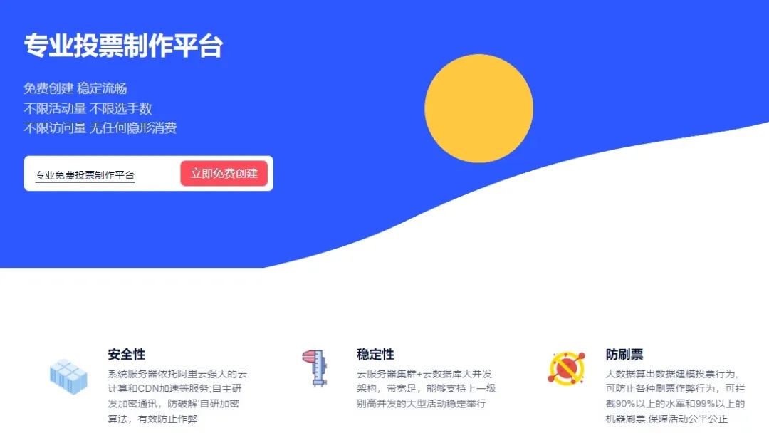 评选星就是这样一个安全稳定的投票制作平台,同时还能保障活动的公平公正。