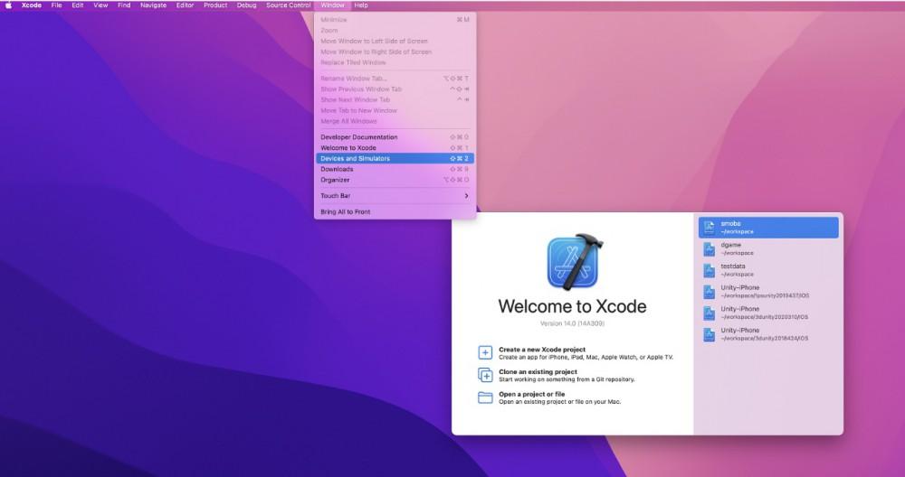 开启方式其实很简单,需要在苹果电脑上下载XCode,经常使用Mac的用户应该知道这个软件是干嘛的。安装完成之后,在XCode内的Window窗口下选中“Devices and Simulators”选项即可。