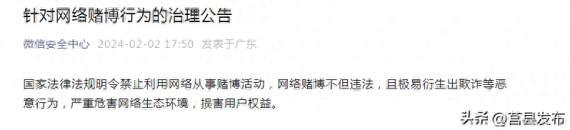近日,“微信安全中心”微信公众号发布针对网络赌博行为的治理公告。
