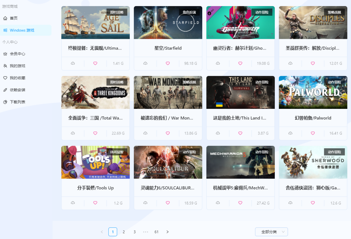 其中,它一共有整整61页的游戏资源,总共722个游戏,怎么样?小伙伴们心动了吗?这么庞大的游戏库里基本涵盖了我们日常所喜爱的各种热门游戏,应有尽有!