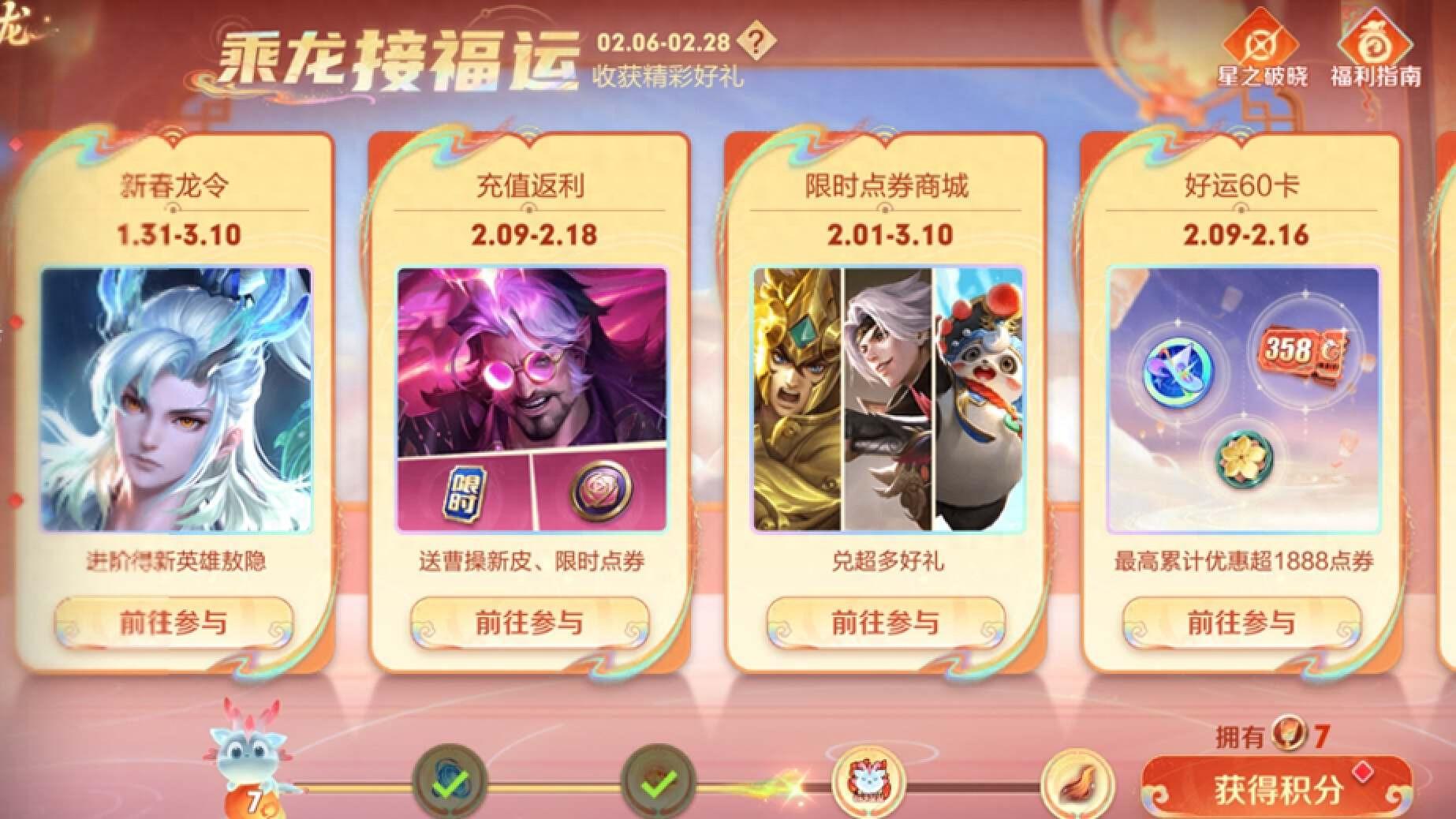 转眼间龙年春节就已经过去了大半,在今年春节,王者荣耀推出了很多的活动,赠送的福利相比较去年有过之而无不及。随着春节假期的结束,这些活动也都进入了倒计时,在接下来的时间会陆续结束。
