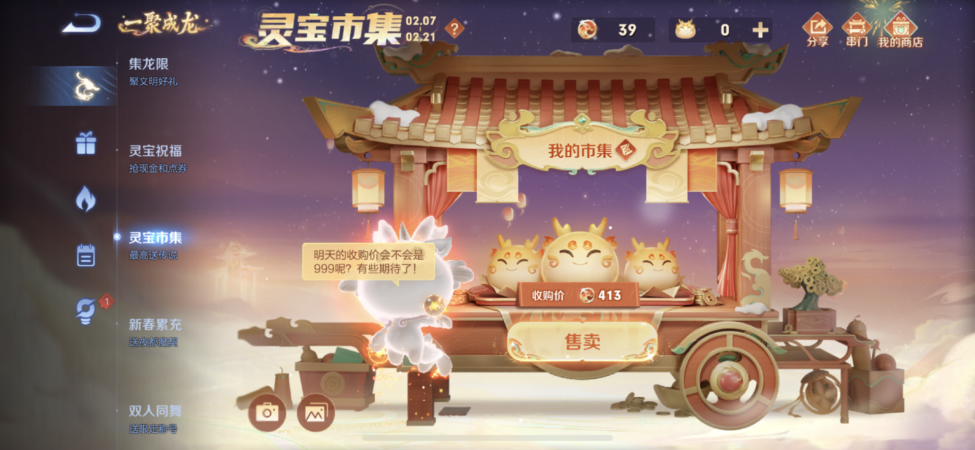 今年春节的惊喜之一就来自于灵宝市集,这个活动的良心程度比起去年更胜一筹。去年玩家最多拿到一款史诗皮肤,而今年却有概率拿到传说皮肤,在灵宝市集的奖池中,总共有9款传说皮肤,只要奖池等级足够高,刷新的时候就有几率出传说皮肤。