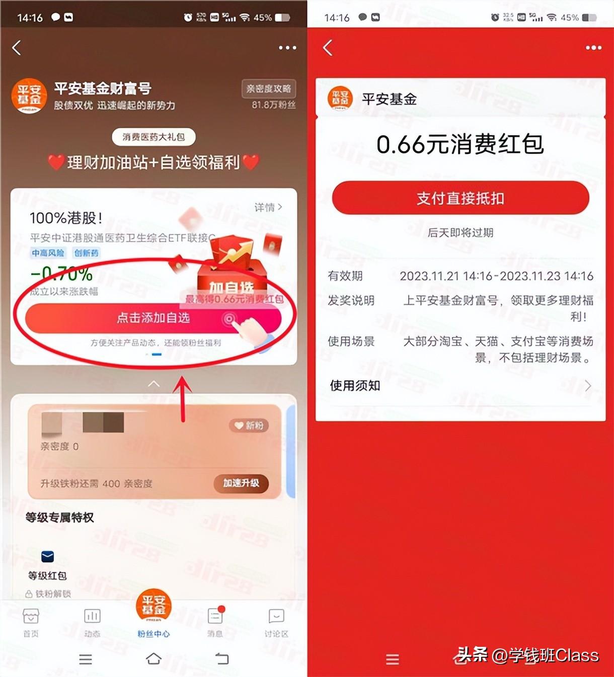 新一期支付宝平安基///金财富号粉丝红包,亲测0.66元消费红包