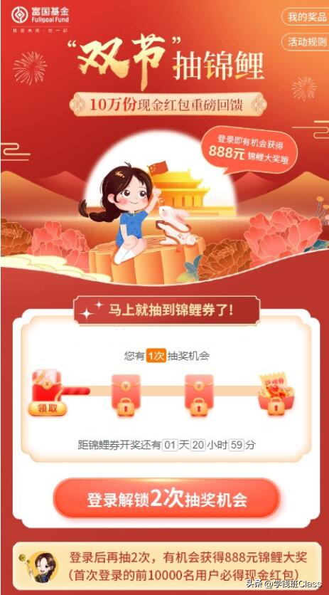 关注【富国基///金微管家】微信点击菜单栏【感恩红包】--【感恩红包】参与,没绑定的能抽1次,绑定过账号的能抽3次,可中多次红包。