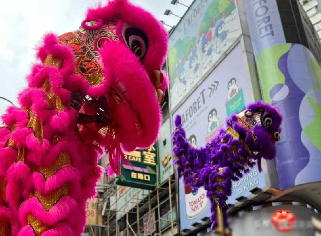 而这次的开业活动绝对是惊艳绽放!甘比不仅邀请了一帮好友,还引来了一个独具创意的醒狮团队。他们采用大气的紫色和俏丽的粉红色醒狮,瞬间将街头装点成一个五彩斑斓的仙境。紫粉的醒狮在阳光下舞动,简直是一场视觉盛宴,让人不由得为这样的独特表演喝彩!