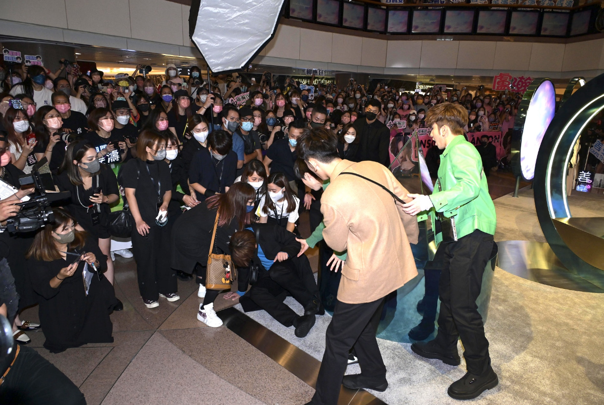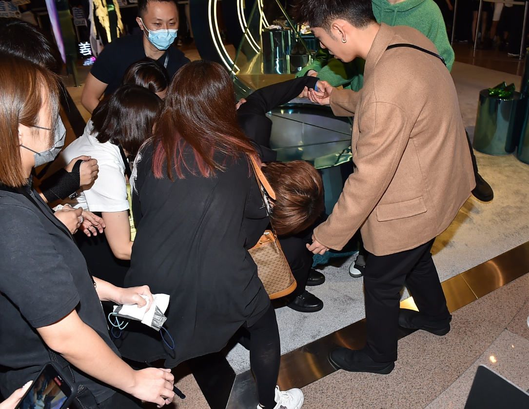 男团“MIRROR”成员姜涛、吕爵安、卢瀚霆、柳应廷14日中午在尖沙咀出席活动,现场引来几百人应援,四人入场后在店内拍摄,其后与粉丝见面互动,不过姜涛出场不够五分钟后突然跌倒,瘫坐在地上表情痛苦,一旁大约有十人上前“护法”,喊停活动的同时送姜涛离开。